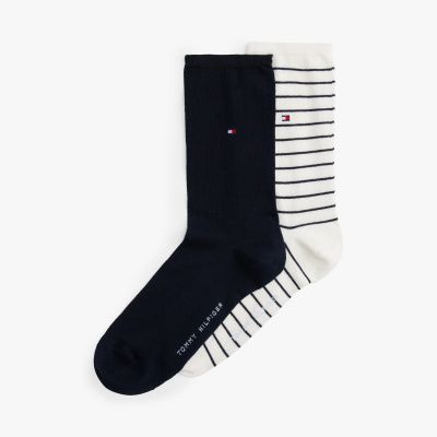 Add variety to your essentials with this two-pack of socks, featuring one pair with all-over stripes and another in a solid shade.