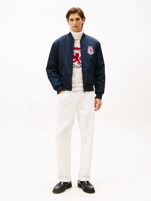 Embrace classic collegiate-inspired style with this water-repellent bomber jacket, which twins an embroidered crest logo patch with striking back branding.