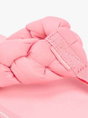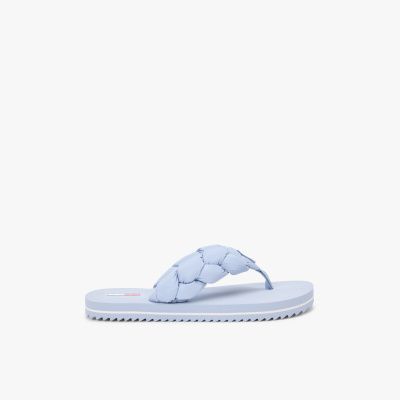 Head to the beach in style with these serrated flip-flops, featuring braided padded straps for a contemporary vibe.