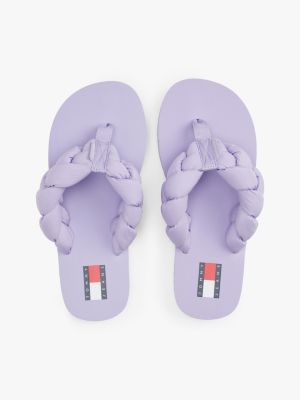 Head to the beach in style with these serrated flip-flops, featuring braided padded straps for a contemporary vibe.