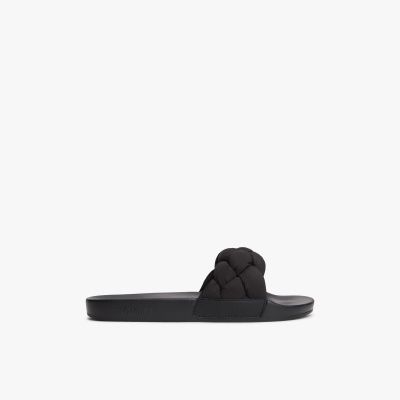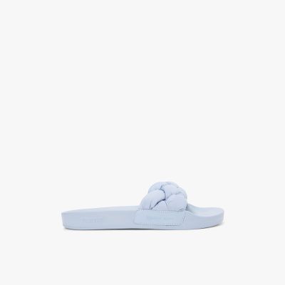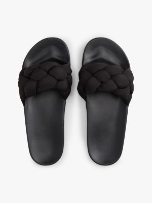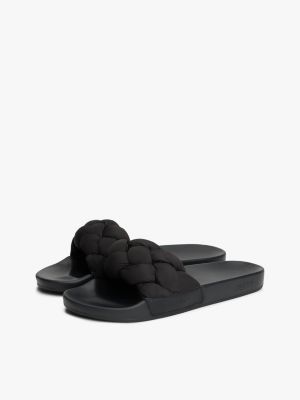 Add a stylish touch to your holiday outfits with these slides, featuring a braided, padded strap for a modern look.
