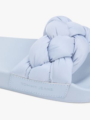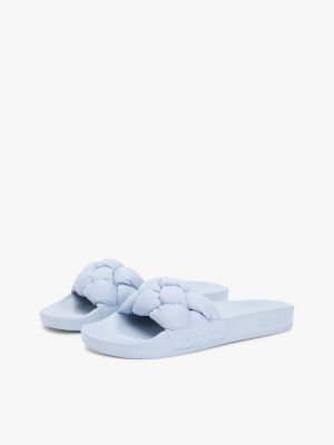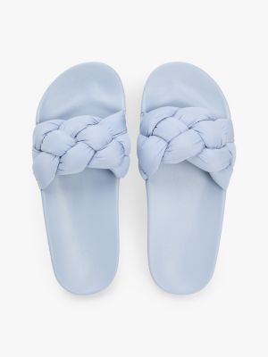 Add a stylish touch to your holiday outfits with these slides, featuring a braided, padded strap for a modern look.