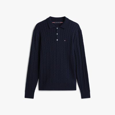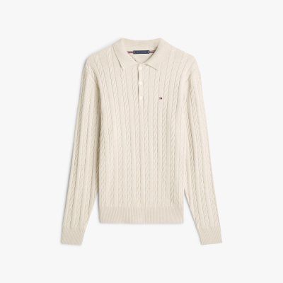 Combining a polo collar with a cable-knit design, this pure combed cotton jumper takes notes from preppy aesthetics.
