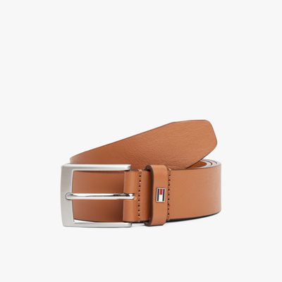 This belt is a refined addition to smart-casual wardrobes, crafted from leather with a tonal buckle and enamel flag on the keeper.