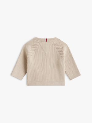 Keep littles one snug in this pure cotton cardigan, featuring a cosy rib-knit finish and charming flag embroidery.