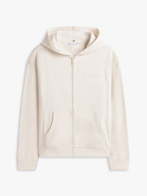 Slip into this cotton-blend French terry hoody with an easy zip-through design and laid-back dropped-shoulder silhouette for cosy lounging.