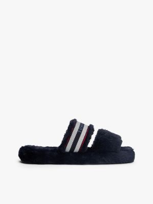 Faux Fur Woven Logo Slippers