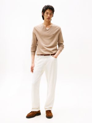 Bring a touch of sophistication to your layering with this pure combed cotton V-neck jumper, complete with flag embroidery detailing.