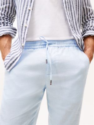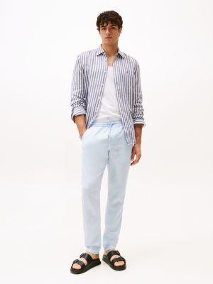 These trousers are made from a linen-blend fabric for a lightweight feel and feature a drawstring waist to enhance the relaxed style.