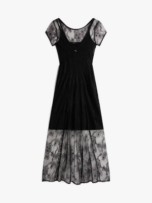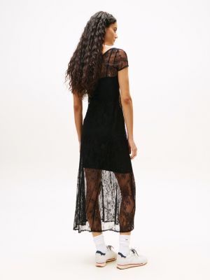 This statement maxi dress taps into a romantic aesthetic, with its floral lace fabric and flag charm under the front bow.