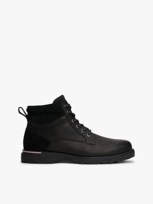 These outdoor boots feature a mix of textures on the leather uppers for an elevated look, while side-zip fastenings add practical detail.