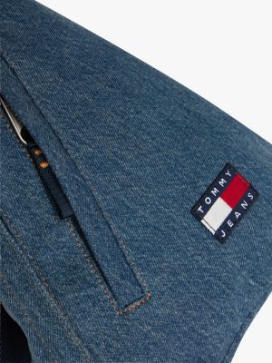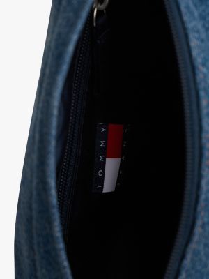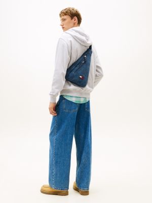 For a retro look, this sling bag is crafted from rigid denim and comes in a sporty single-strap design with badge detailing.