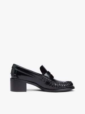 Showcase a new take on the classic penny loafer with this block-heel pair, made from patent leather finished with branded coin detailing.