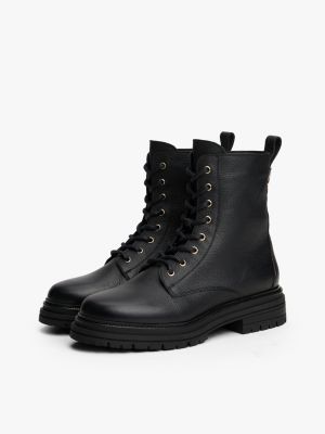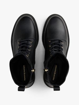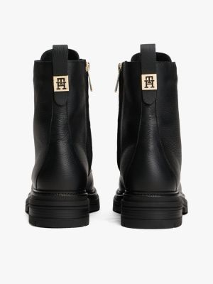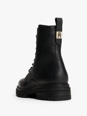 These leather lace-up boots feature an elevated pebble-grain texture and are complete with a gleaming TH monogram plaque on the back.