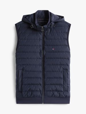 This intechno knit gilet has a sweatshirt-style hooded design with warm quilting, making it a cosy option for mid-season layering.