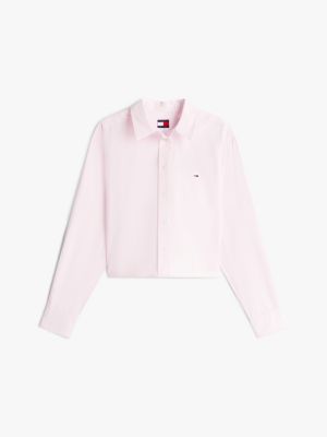 This smart, pure cotton poplin shirt delivers a strong silhouette with its cropped length and easy, relaxed fit.