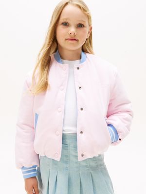 Get two looks in one with this reversible bomber jacket, featuring statement branding and striped cuffs for a varsity look.