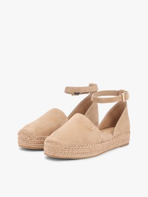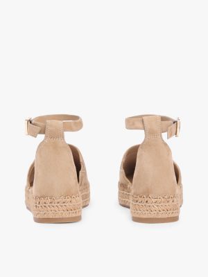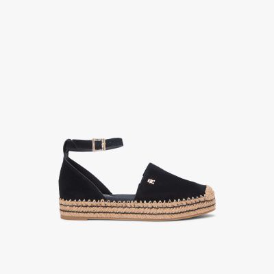 These suede espadrilles combine jute-covered platform soles with an open sandal design, for a shoe that suits both day and evening ensembles.