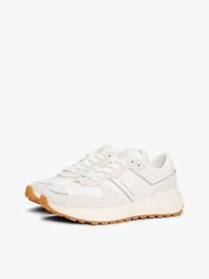Tap into athleisure vibes with these running-inspired trainers, featuring mixed texture panels and embossed branding for statement style.