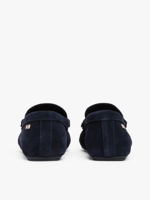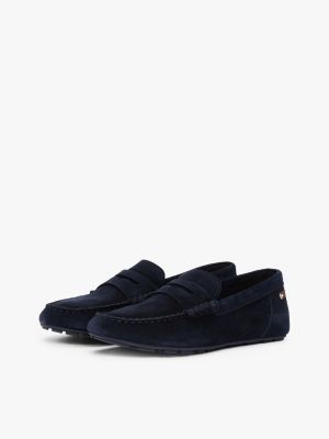 These sleek suede driver shoes are finished with a discreet enamel flag on the heel, adding to their sophisticated penny strap design.