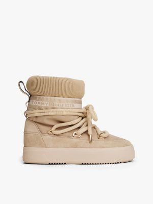 These lace-up snow boots are a stylish option for cold weather, with their warm lining, water-repellent finish and eye-catching hardware.