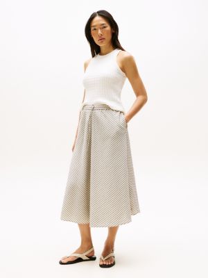 The maxi skirt is experiencing a fashion renaissance, and a long Tommy Hilfiger skirt will take you from the office to the weekend in seconds. Make an impression by pairing a mini skirt with ankle boots and a leather biker jacket for an edgy look. Or meet in the middle with a classic midi skirt, a style that is tailor made for day-to-night dressing. Pair a tartan skirt with a crisp white shirt for a nod to traditional dressing with a uniquely fashionable twist. Don’t forget about our A-Line styles, an all-time figure flattering cut with high waist bands in versatile mini or midi lengths.